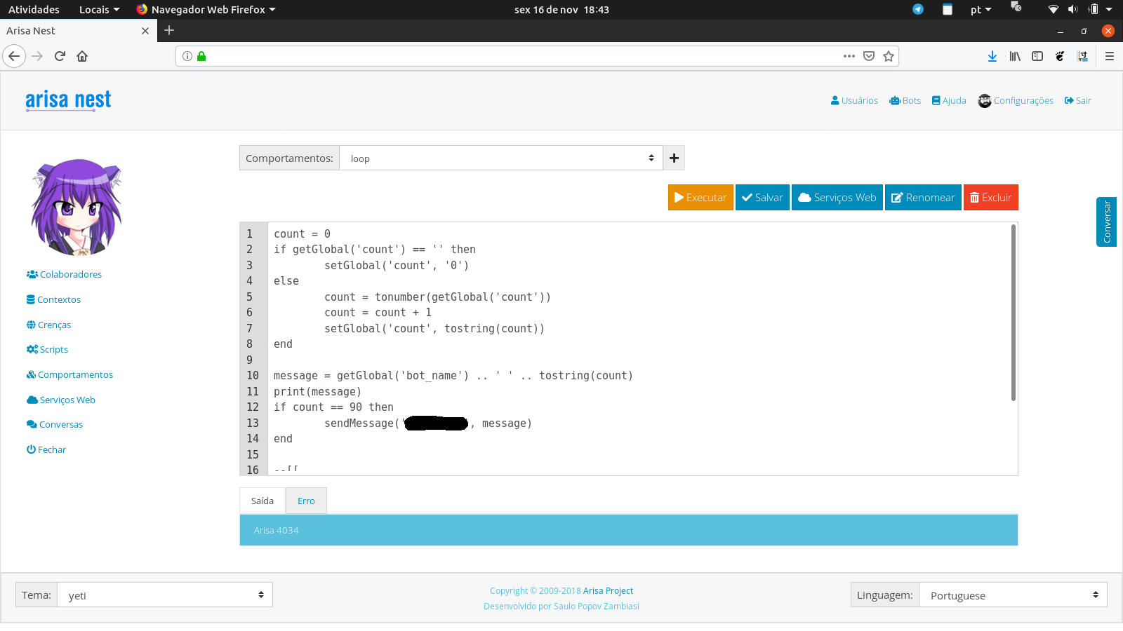 Hoje a plataforma Arisa Nest se tornou proativa. Para que tal proatividade fosse possível, foi desenvolvido um servidor em linguagens de programação Go e PHP para gerenciar scripts de proatividade chamados behaviors e um editor de comportamentos na interface web. Os behaviors são scripts desenvolvidos em linguagem de programação LUA, embarcados na plataforma Arisa Nest, que são executados regularmente.