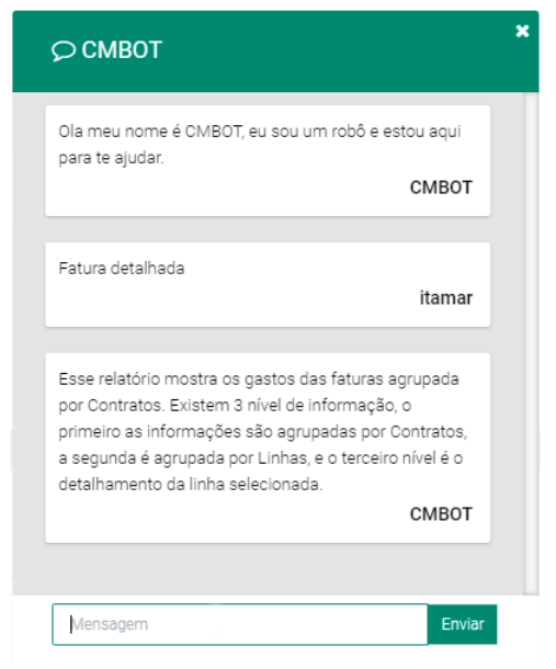 A finalidade do chatbot foi recepcionar o cliente (usuário dos sistemas da empresa) e auxiliá-lo a completar o atendimento até seu fechamento. No site de atendimento foi criado um módulo web no canto inferior direito do site para interagir com o bot. O projeto foi desenvolvido na versão atual da plataforma, mas, além da base de conversação, usaram apenas o recurso de crenças para tratar algumas informações dos clientes.